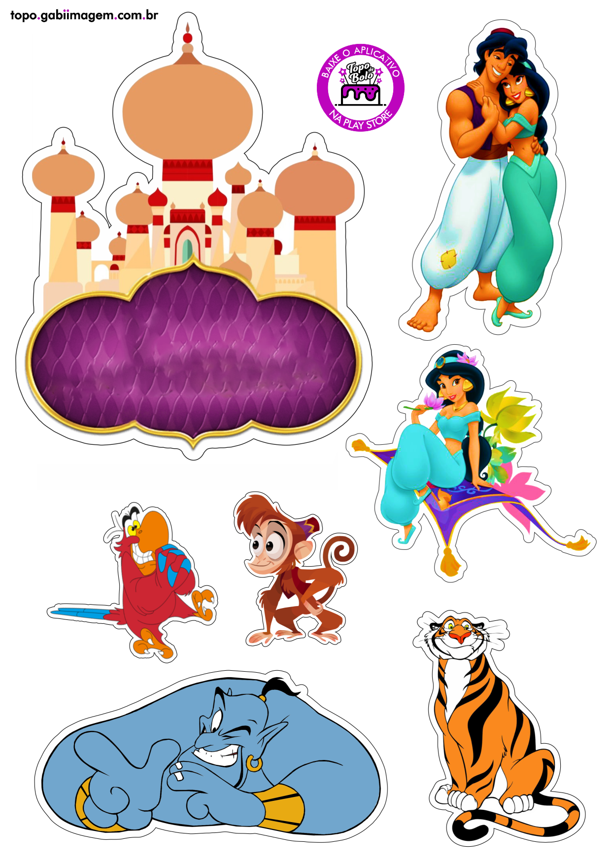 Vai organizar uma festa do Aladdin e quer um topo de bolo super encantador? Nós temos o que você precisa! Baixe gratuitamente o topo de bolo do Aladdin e dê aquele toque mágico à sua festa. 🏰